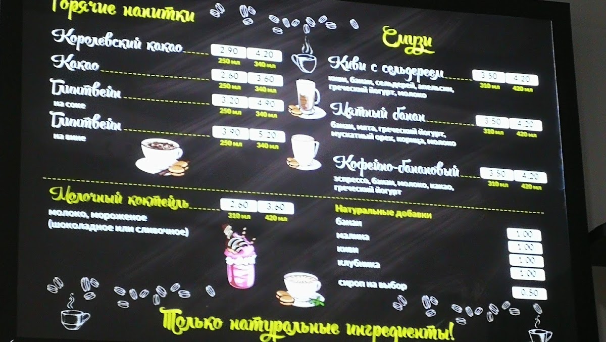 Welcome to Kofe Kraft, a delightful café nestled at Ulitsa Sovetskaya 107 in Babruysk. This charming spot promises more than just coffee; it offers an experience wrapped in cozy, romantic ambiance. The menu is a haven for coffee lovers, featuring high-quality brews, including the intriguing coffee prepared in a Turkish style on sand. Customers rave about the friendly baristas who craft everything from classic cappuccinos to unique specialties like cedar cappuccino and coffee infused with pomegranate juice.